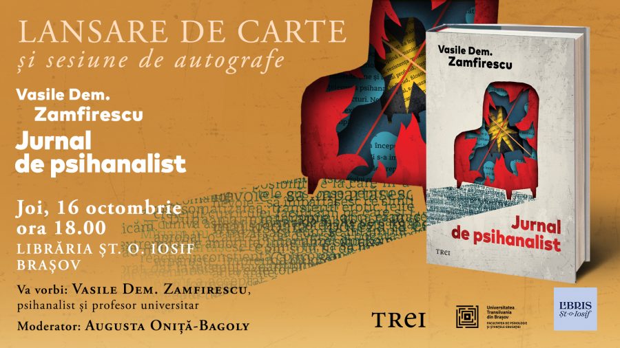 Editura Trei vă invită joi, 16 octombrie, începând cu ora 18:00, la evenimentul de lansare a cărții „Jurnal de psihanalist” scrisă de Prof. univ. dr. Vasile Dem. Zamfirescu. Lansarea va avea loc în librăria Șt.O.Iosif din Brașov începând cu orele 18.00. Va vorbi: Vasile Dem. Zamfirescu, psihanalist și profesor universitar Moderator: Augusta Oniță-Bagoly Prima întâlnire […]