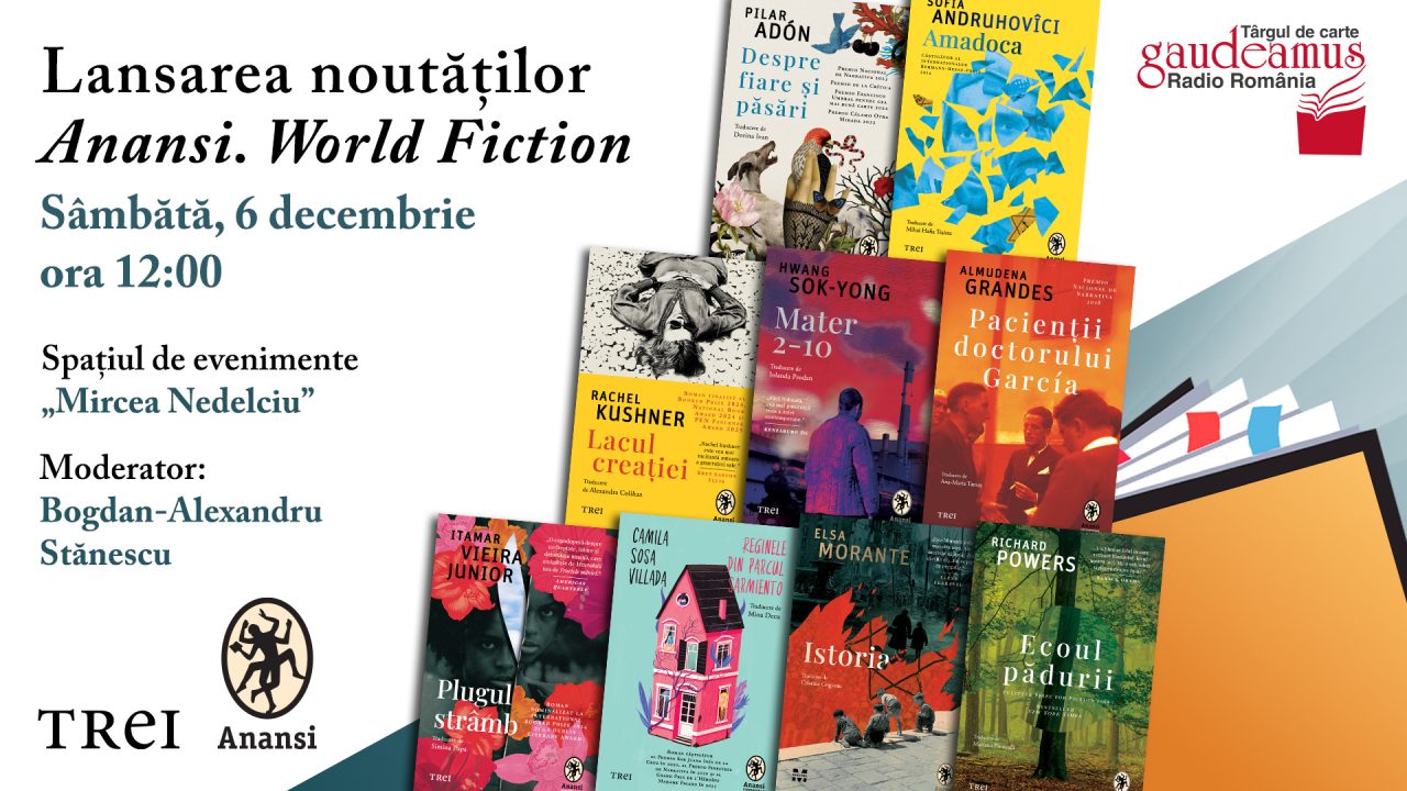 O ofertă bogată de noutăți îi așteaptă la Gaudeamus 2025 pe iubitorii de literatură universală la rafturile imprintului Anansi. World Fiction din cadrul standului Editurii Trei. Cu cinci ani de existență, sărbătoriți în această toamnă, și peste 180 de titluri publicate, Anansi. World Fiction își răsfață cititorii și la ediția din acest an a cunoscutului târg de carte Gaudeamus cu o selecție generoasă de titluri: atât traduceri noi din operele unor scriitori îndrăgiți, cât și autori traduși în premieră în limba română.