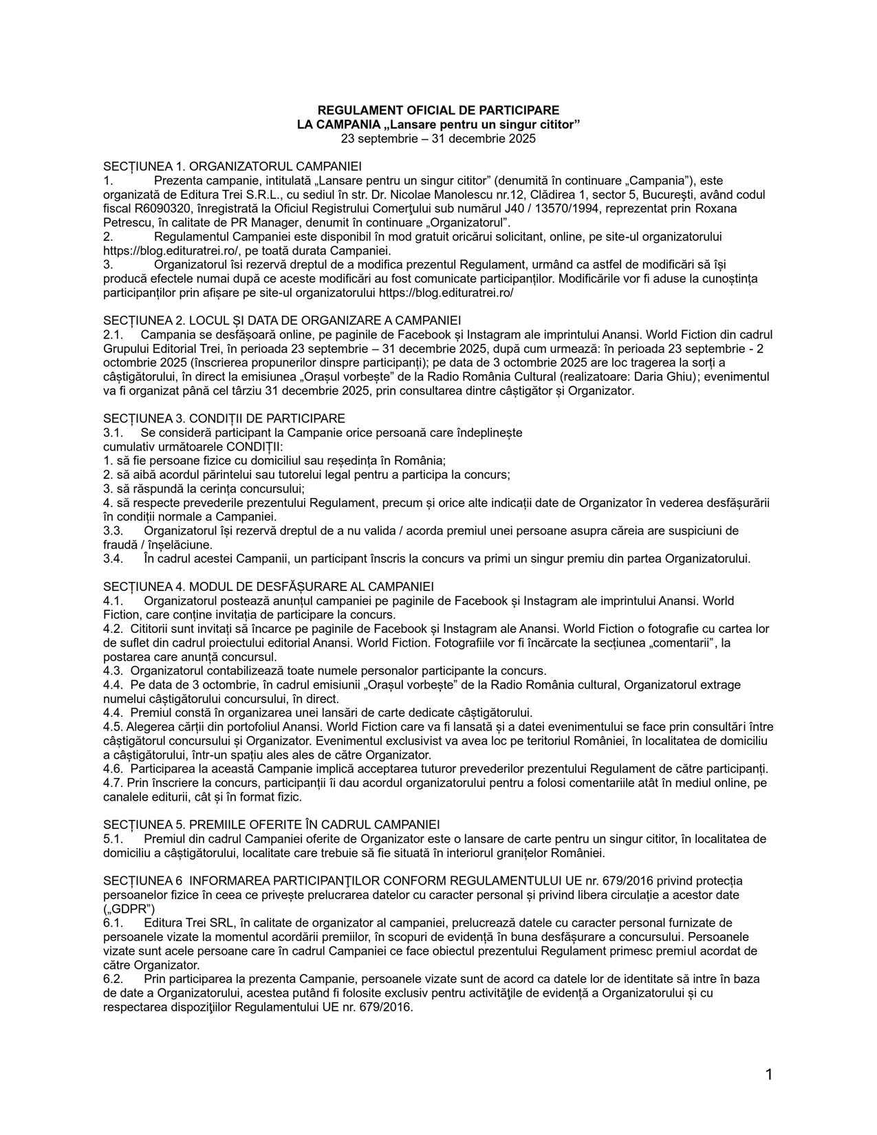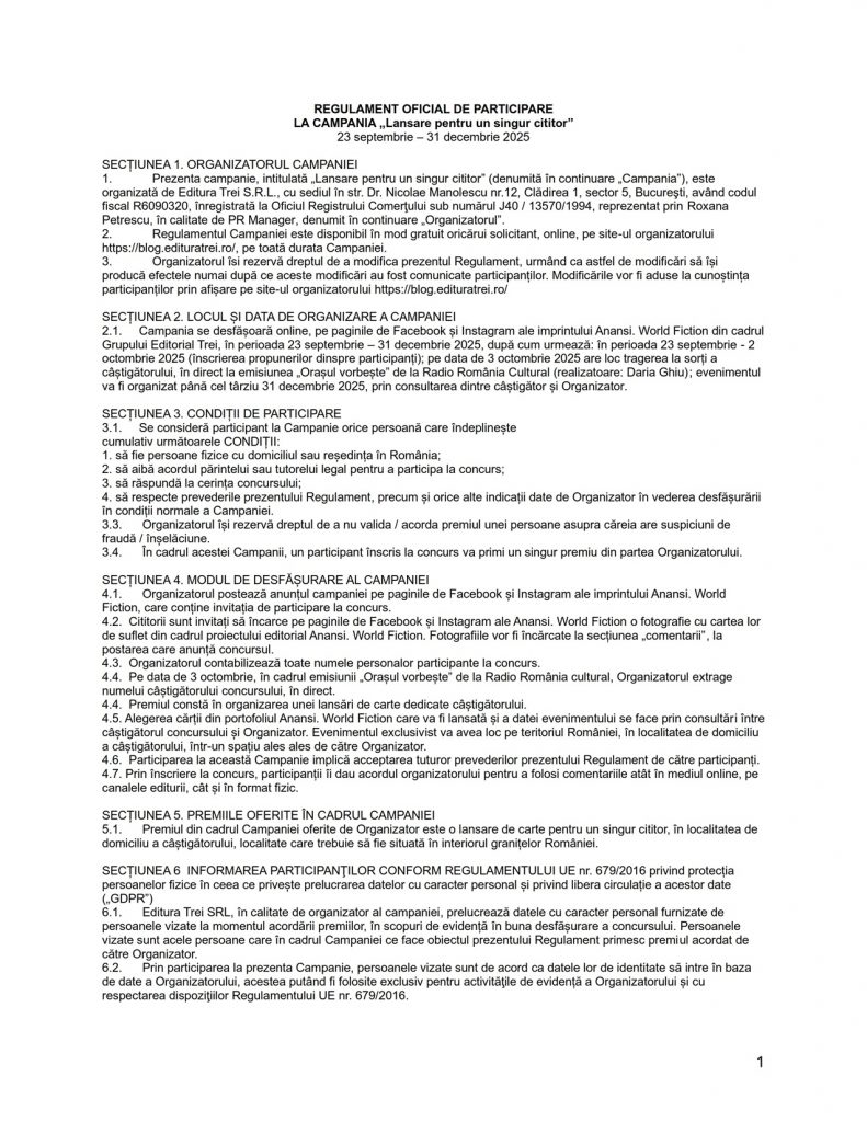 Pe 3 octombrie 2025, în cadrul emisiunii „Orașul vorbește” la Radio România Cultural, vom trage la sorți numele celui care va primi acest cadou literar de neuitat.
