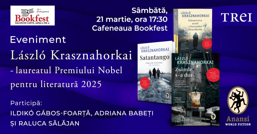 Editura Trei, imprintul Anansi.World Fiction și Bookfest Timișoara vă așteaptă sâmbătă, 21 martie, ora 17:00, la Cafeneaua Bookfest, la evenimentul dedicat literaturii lui László Krasznahorkai, câștigătorul Premiului Nobel pentru Literatură 2025. Participă Ildikó Gábos‑Foarță – traducătoarea romanelor publicate la Grupul Editorial Trei, Adriana Babeți și Raluca Selejan. „Pentru un scriitor ale cărui personaje sunt atât […]
