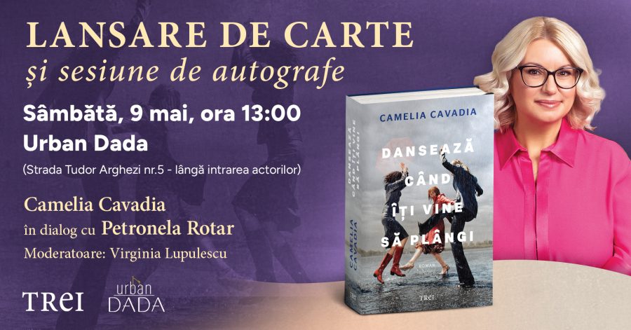 Editura Trei și Urban Dada (str.Tudor Arghezi nr.5) vă așteaptă sâmbătă, 9 mai, la întâlnirea prilejuită de apariția celui mai recent roman scris de Camelia Cavadia – „Dansează când îți vine să plângi”, o poveste despre puterea prieteniei și felul în care ea ne poate salva. Autoarea va intra în dialog cu Petronela Rotar, scriitoare […]