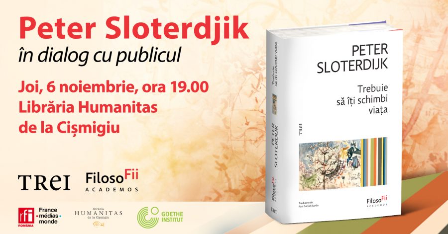 Editura Trei și Librăria Humanitas de la Cișmigiu (Bulevardul Regina Elisabeta, nr.36) vă invită joi, 6 noiembrie, ora 19:00, la întâlnirea cu filosoful german Peter Sloterdijk, prilejuită de apariția volumului „Trebuie să îți schimbi viața. Despre antropotehnică” în cea mai nouă colecție de filosofie de pe piața de carte din România. Participă Paul Gabriel Sandu, […]