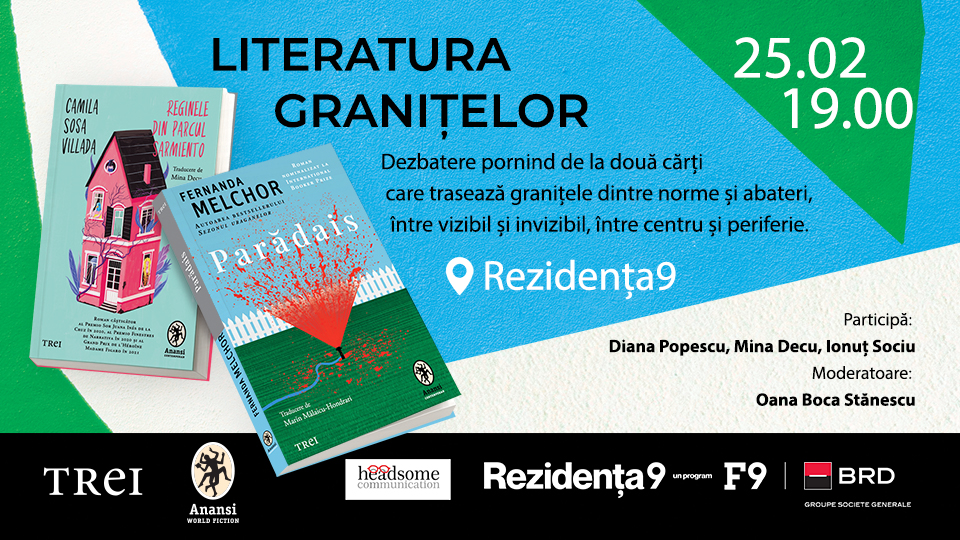 Miercuri, 25 februarie, începând cu ora 19.00, Rezidența9 devine scena unui eveniment special dedicat literaturii granițelor, în care două romane contemporane puternice, traduse recent în limba română în cadrul imprintului Anansi.World Fiction de la Editura Trei, intră în dialog pentru a ne provoca și inspira: „Parădais” de Fernanda Melchor (Mexic) și „Reginele din Parcul Sarmiento” de Camila Sosa Villada (Argentina).