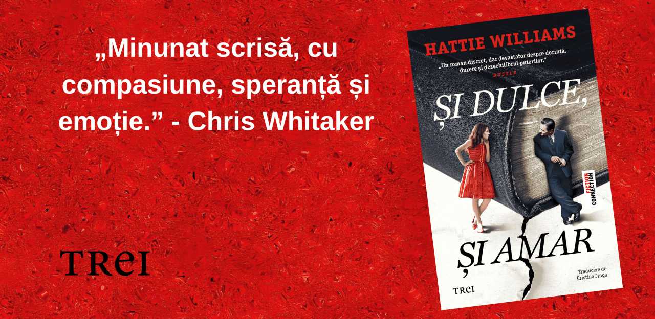 Romanul Și dulce, și amar, de Hattie Williams, publicat recent de editura Trei în colecția Fiction Connection, reprezintă debutul unei autoare care aduce o perspectivă  nuanțată asupra relațiilor dezechilibrate și a vulnerabilității emoționale. Odată cu prima sa carte, Hattie Williams devine una dintre cele mai titrate și apreciate voci ale literaturii contemporane.